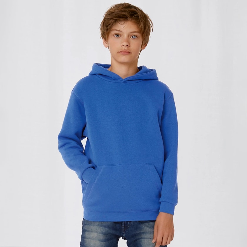 Huvtröja för barn som kan beställas från endast 10 st. Tröjan är tillverkad av ett tåligt tyg av bomull- och polyester. Av säkerhetsskäl har huvan inga snören. Levereras styckförpackade i plastpåse. Finns även som vuxenmodell.