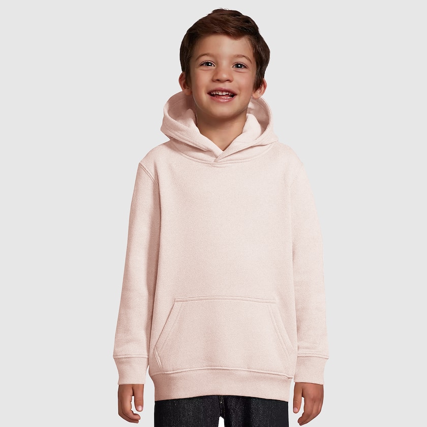 Prisvärd hoodie för barn. Hoodien saknar snören i halsen för att förhindra stryprisk. Tillverkad av 80% bomull och 20% återvunnen polyester.