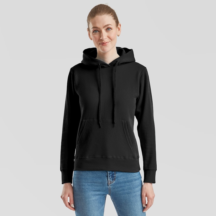 Figursydd huvtröja bara för damer. Lady-Fit Classic Hooded Sweat är en klassisk huvtröja i ett lite mer figursytt och feminint utseende. Tröjorna levereras styckförpackade i plastpåse. Finns även som herrmodell.