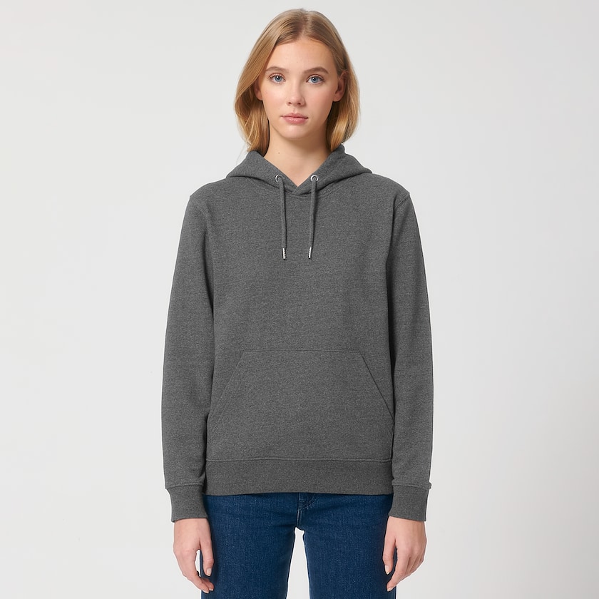 Hoodie av miljövänligt material. Hoodien har de klassiska detaljerna och är i unisexmodell. Tyget är tillverkat av 43% ekologisk bomull, 42% återvunnen bomull och 15% återvunnen polyester. Det återvunna materialet gör att tyget är strävare än vanligt.