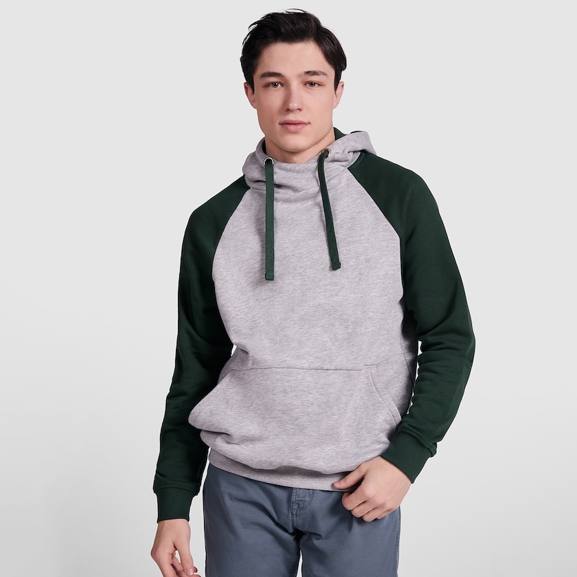 Tvåfärgad hoodie i unisexmodell. Tillverkad av ett tåligt tyg av 50% bomull och 50% polyester. Storlekarna är relativt små så ta gärna en storlek större än normalt.