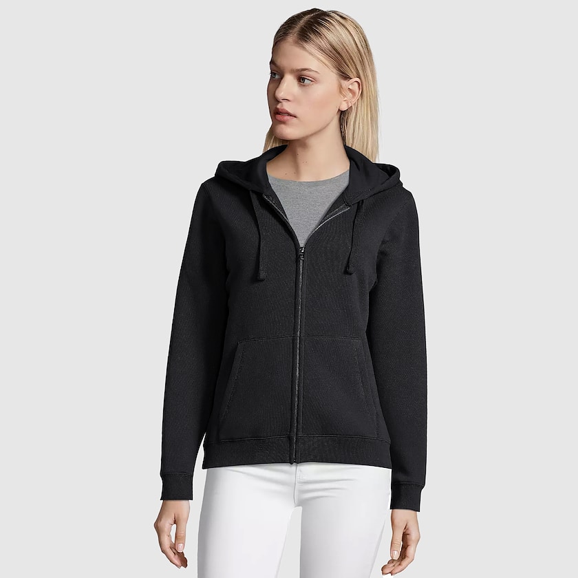 Hoodie för damer från franska SOL´s. Hoodien har lång dragkedja och två fickor. Insidan är gjord av 80% bomull och 20% polyester. Utsidan är gjord av 100% bomull. Bomullen är OEKO-TEX-certifierad. Finns även som herrmodell.