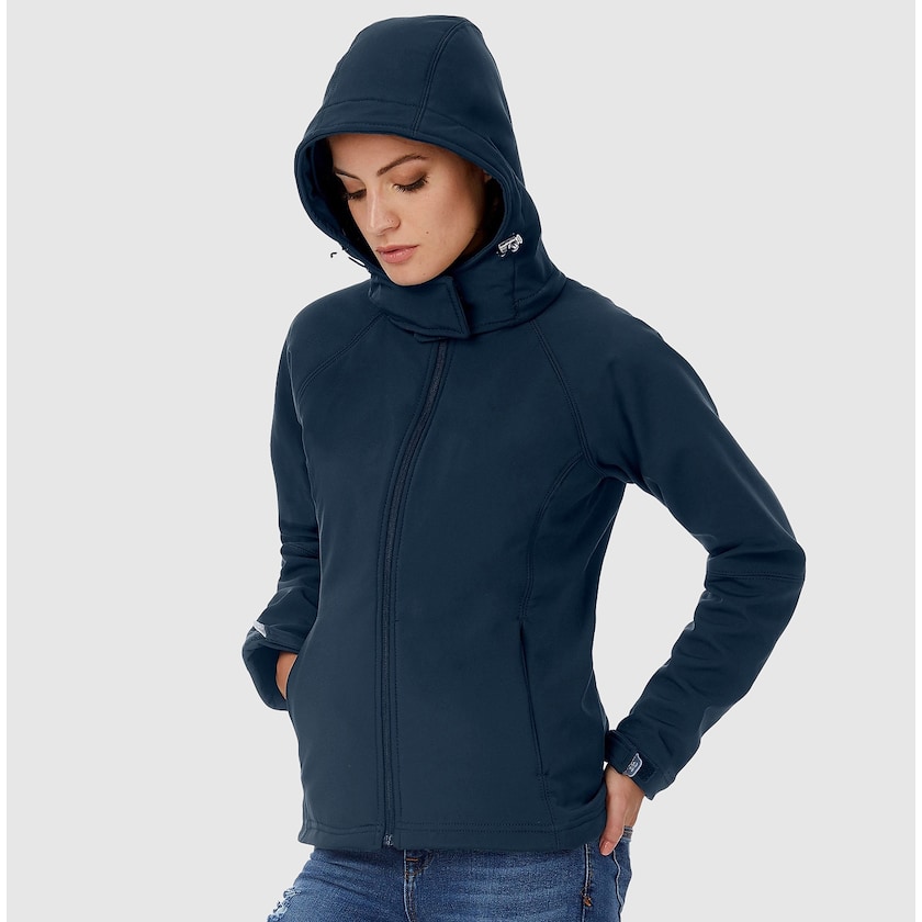 Avancerad softshell-jacka med huva. Jackan har ett sofistikerat 3-lagers tyg med ett membran för maximal komfort. Membranet gör att jackan är vatten- och vindtät och kan andas. Tyget är dessutom behandlat med ett vattenavvisande material. Huvan är möjlig att ta av. Jackan är skönt fleecefodrad. Finns även som herrmodell.
