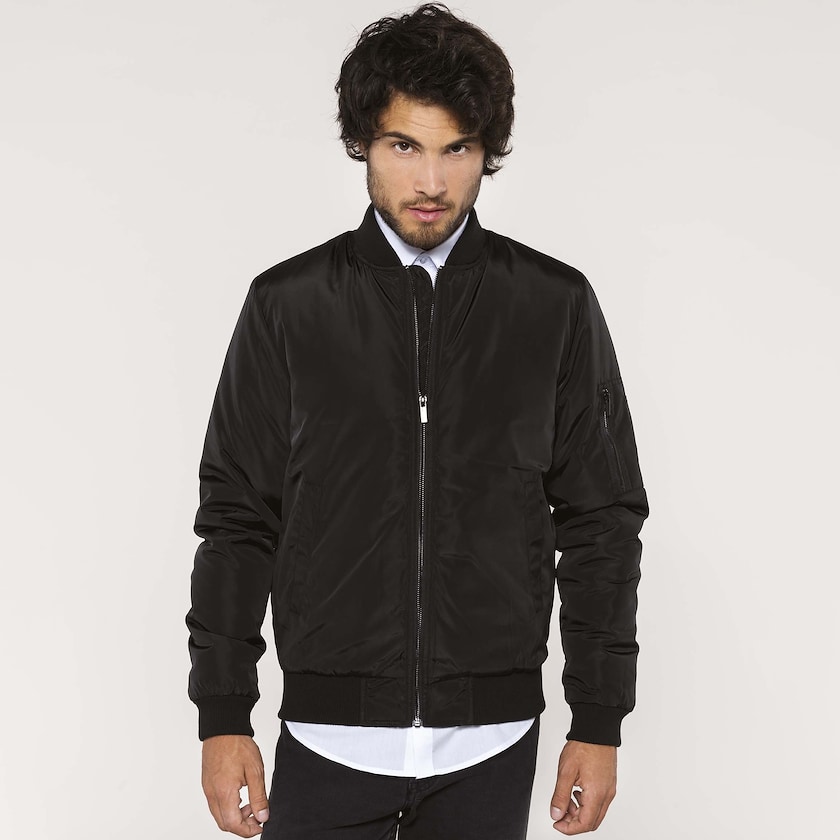 Bomberjacka för män. Jackan har alla de klassiska attributen med två sidofickor, en ärmficka och en innerficka. Beställ bomberjackor med tryck hos Axon Profil! Finns även som dammodell.