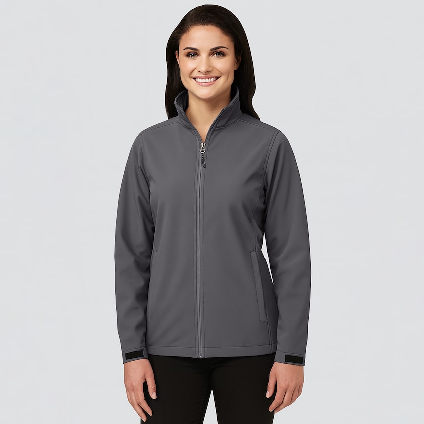 Softshelljacka för kvinnor som kan beställas från endast 5 st. Jackan är 8000 mm vattentät och 2000 g/m² ventilerad. Ärmsluten kan regleras. Jackan är både vattentät och kan andas. Finns även som herrmodell.