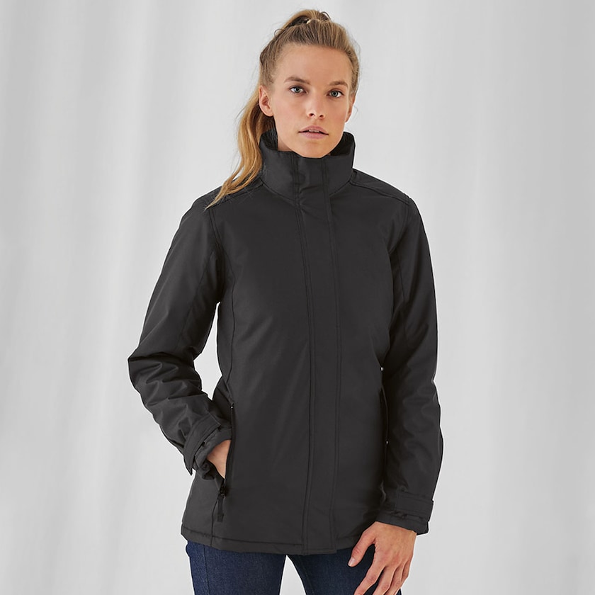 Fodrad parkasjacka i dammodell. En perfekt vinterjacka! Jackan har en dold huva i kragen och framtill finns två fickor med dragkedja. Även innerfickan är försedd med dragkedja. Ärmarna är ergonomiskt utformade för att underlätta rörligheten. Ärmsluten är reglerbara. Finns även som herrmodell.