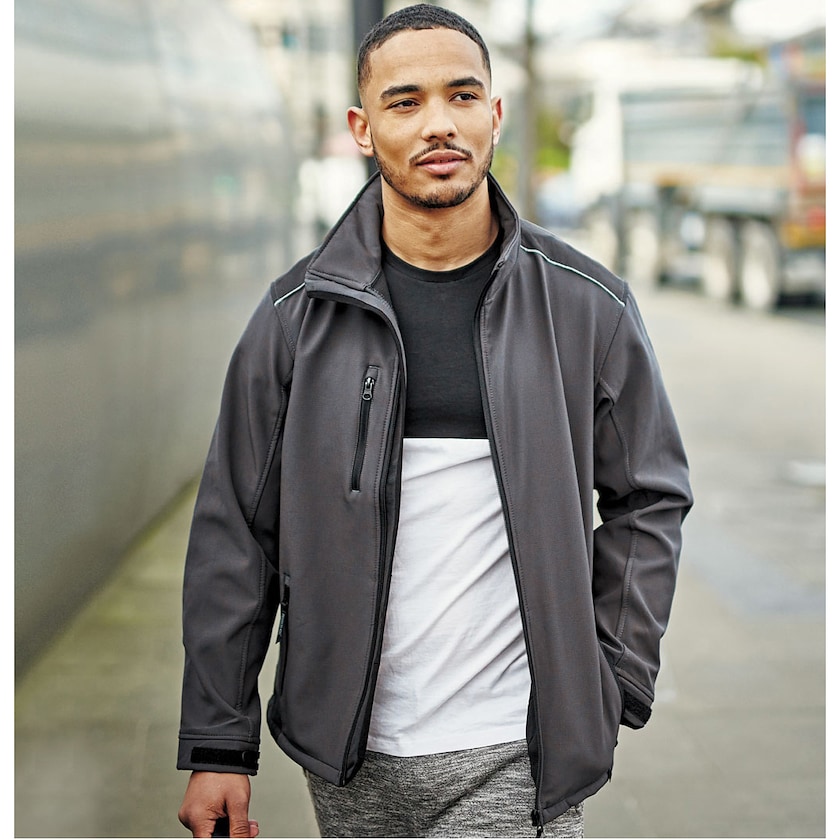 Tålig fodrad jacka av soft shell material. Jackan har ett vattenavvisande ytskikt som torkar snabbt. Den står dessutom effektivt emot vind. Alla fickor är dragkedjeförsedda. En perfekt arbetsjacka!