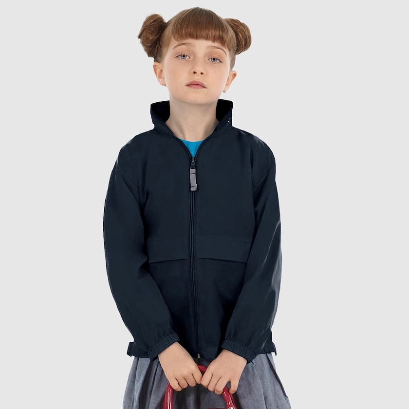 Enormt prisvärd vindjacka för barn. Perfekt för kampanjen! Jackan har en huva som är dold i kragen. Jackan levereras i en ficka där jackan lätt kan vikas ihop och förvaras när den inte används. Jackan är ofodrad.