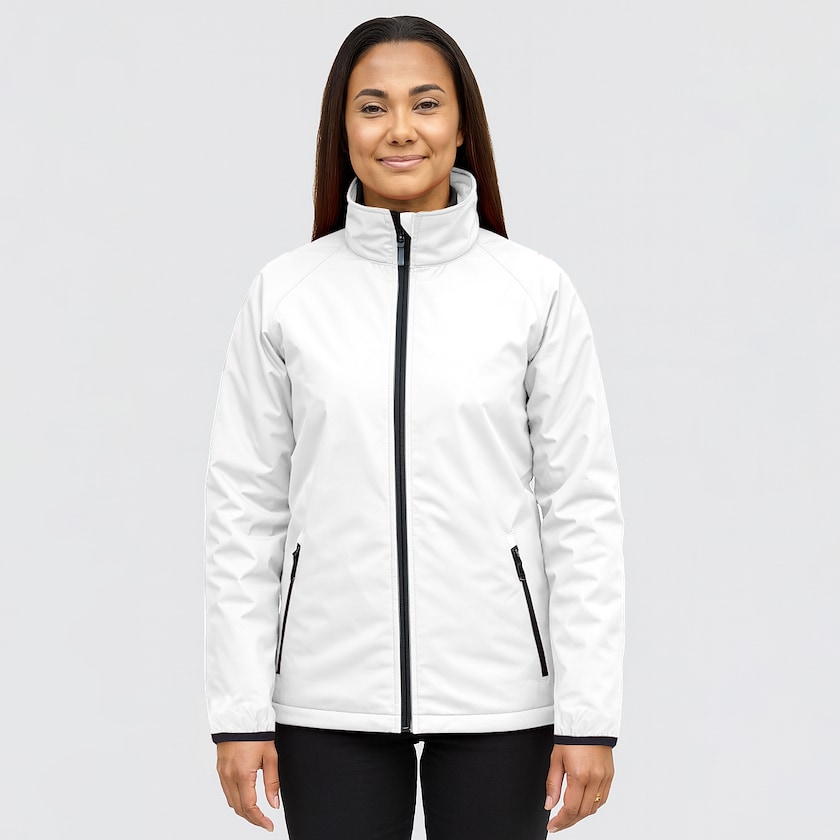 Lättviktsjacka med huva för damer. Tyget står emot väta. Sidofickorna är försedda med dragkedjor och invändigt finns en innerficka. Finns även som herrmodell.