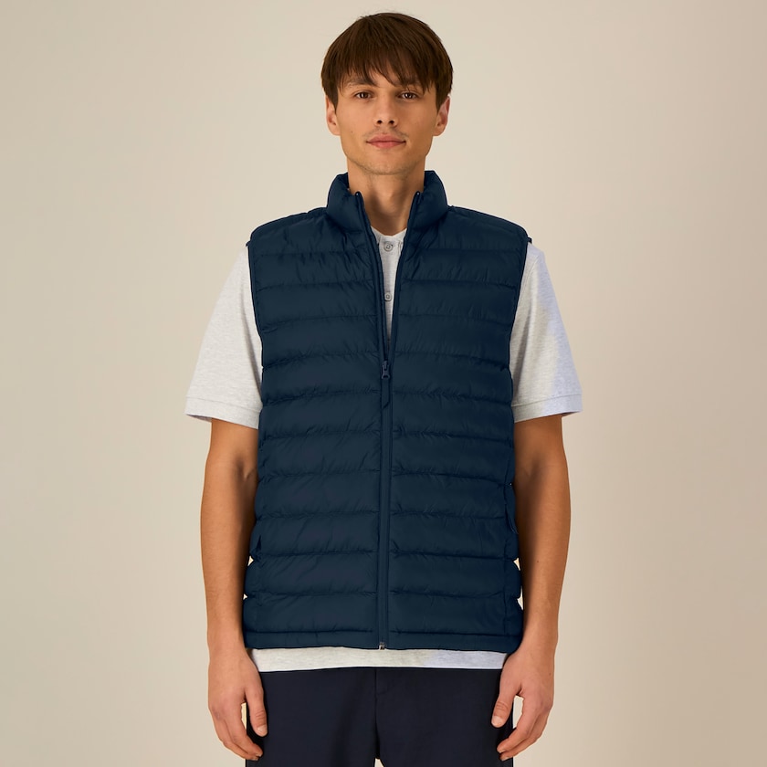 Vadderad väst från Stanley & Stella. Västen har ett vattenavvisande ytskikt. På sidorna finns dragkedjeförsedda fickor. Finns även som dammodell.