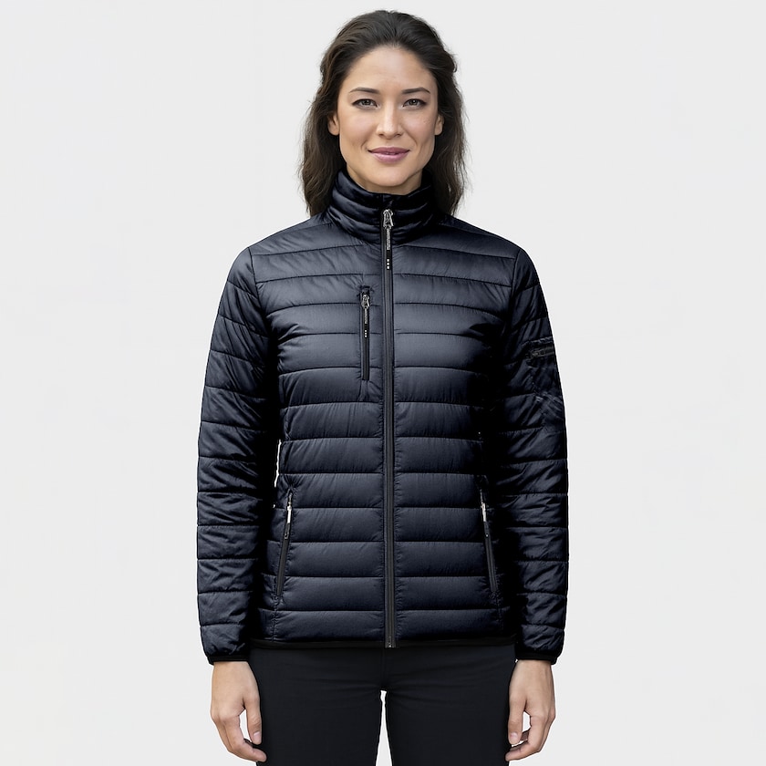Lätt vinterjacka för damer. Jackans alla fickor är försedda med dragkedjor. Ytskiktet är vattenavvisande och fodret består av 90% dun och 10% fjädrar vilket ger fantastisk komfort. Finns även som herrmodell.