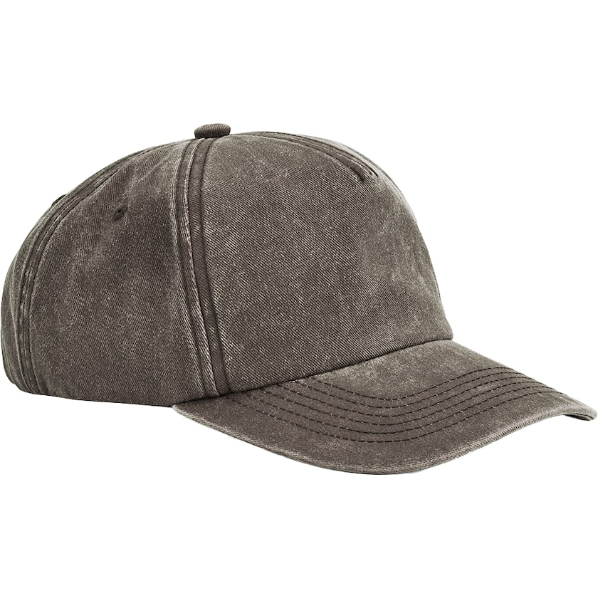 Ostrukturerad keps med vintagestyling. Baktill finns ett metallspänne i mässingsfärg.