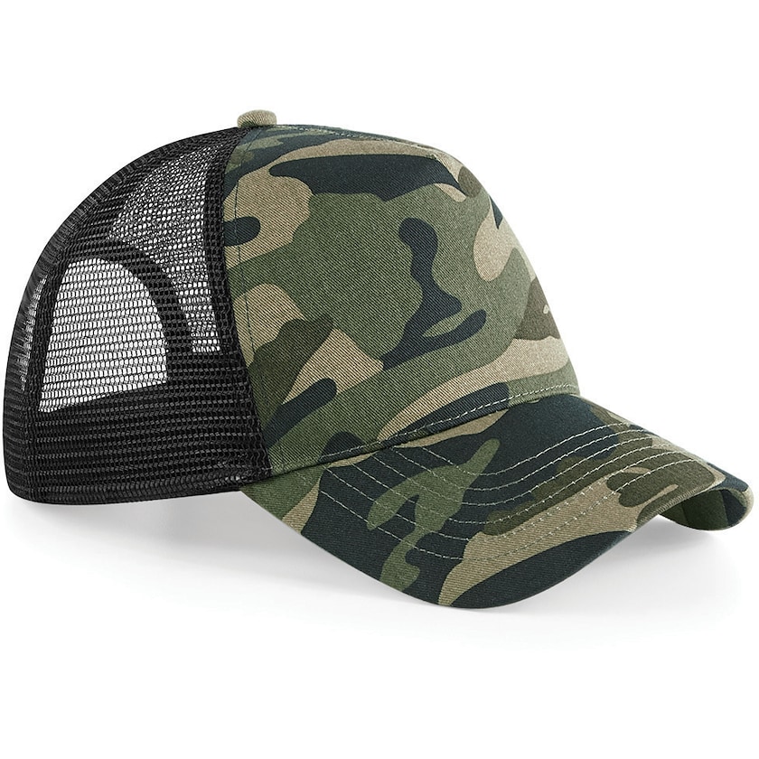 Kamoflagekeps i truckerutförande. Välj mellan två olika kamoflagemönster. Kepsarna har frontpanel av bomull och bakstycke av polyester.