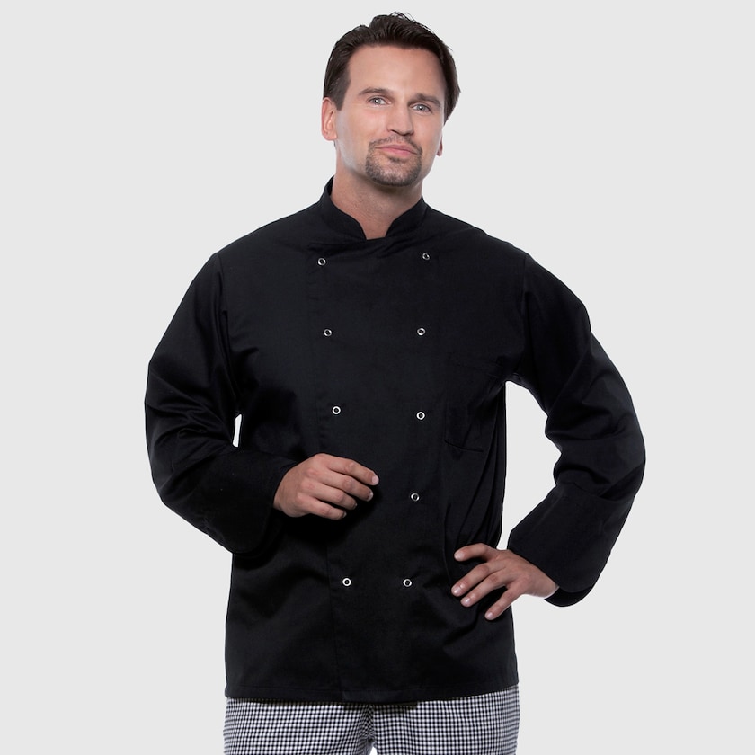 Klassisk kockjacka med tåligt tyg. Tyget är tillverkat av en slitstark blandning av bomull och polyester. Kockjackan stängs med 10 tryckknappar. Klarar tvätt i upp till 60 grader. Passar lika bra för män som kvinnor. Ett bra val för dig som söker en prisvärd kockjacka med brodyr.