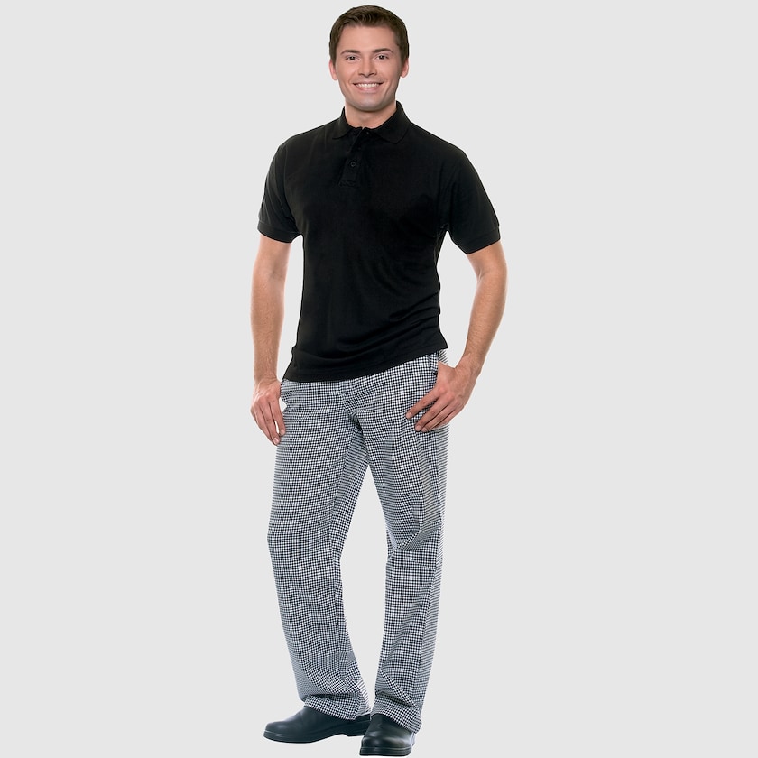 Tidlösa kockbyxor för män. Baktill finns ett elastiskt band för ökad komfort. Byxorna har sidofickor samt en bakficka. Klarar industritvätt i upp till 95 grader. Finns även som dammodell.