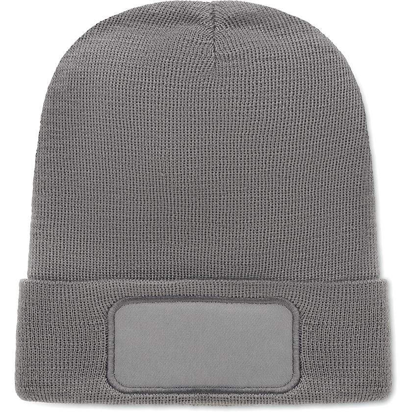 Stickad mössa med etikett med plats för ditt tryck. Mössan är tillverkad av rPET, dvs återvunna PET-flaskor. Unisexmodell.