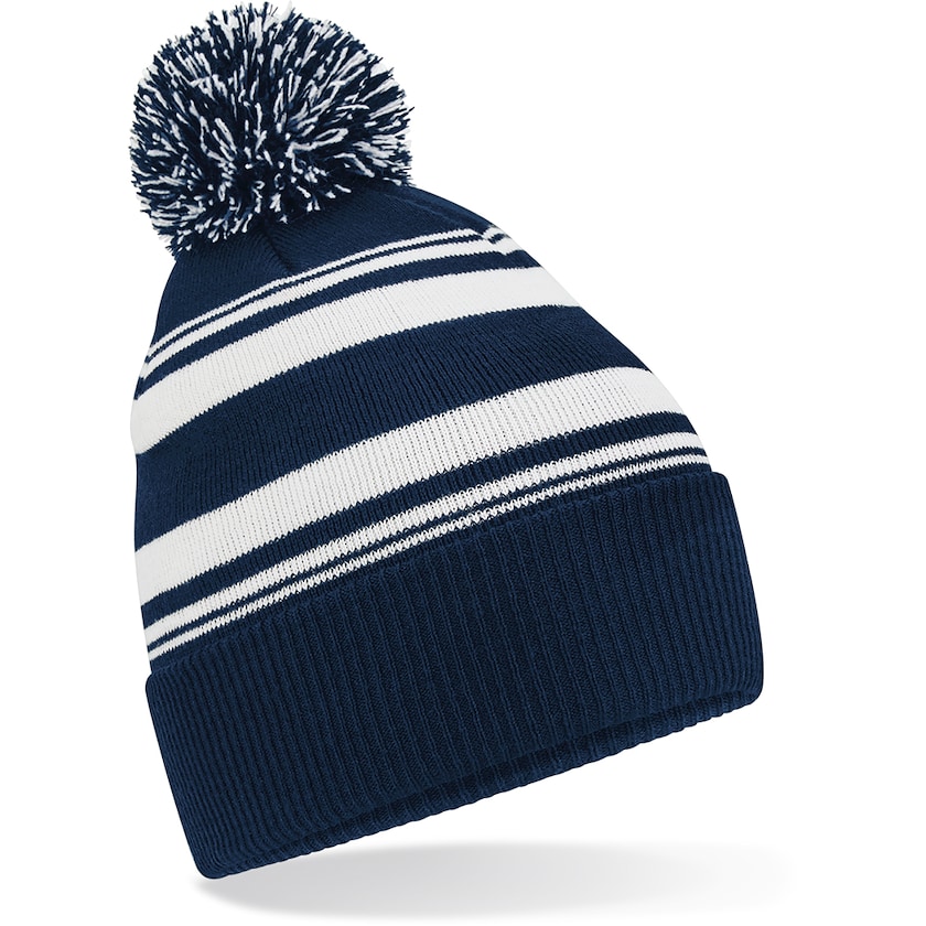 Randig mössa med stor tofs. Mössan är tillverkad av minst 50% återvunnen polyester och 50% vanlig polyester. En snygg mössa som dessutom är ett bra val för miljön.