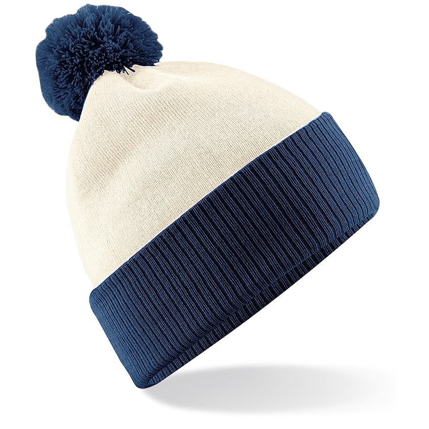 Härligt tvåfärgad mössa med stort uppvik och stor boll.
