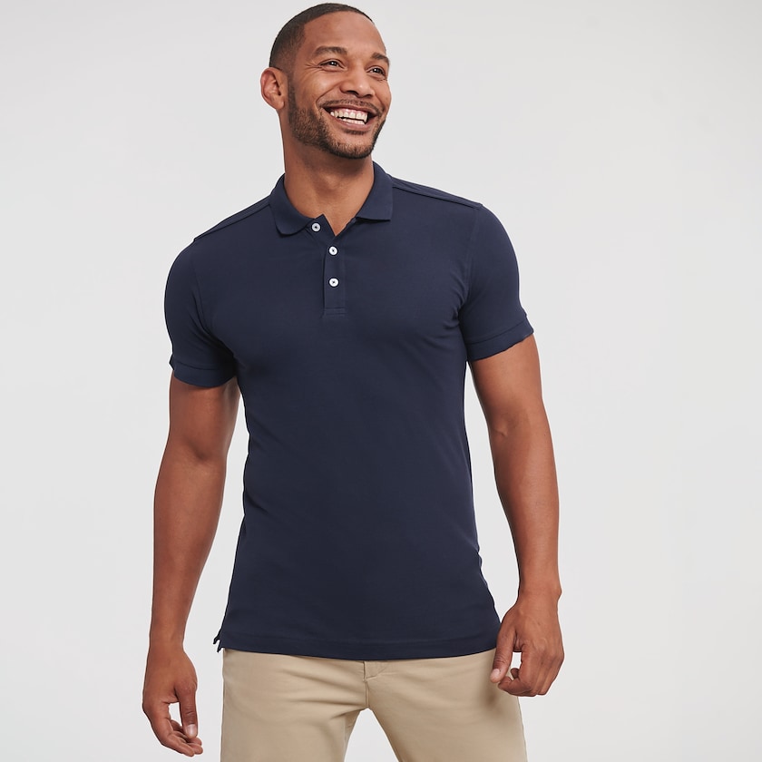 Slimmad pikétröja för herrar med stretch i tyget. Tyget innehåller 5% Lycra vilket gör tröjan underbart följsam och behaglig. Tröjorna levereras styckförpackade i plastpåse. Finns även som dammodell.