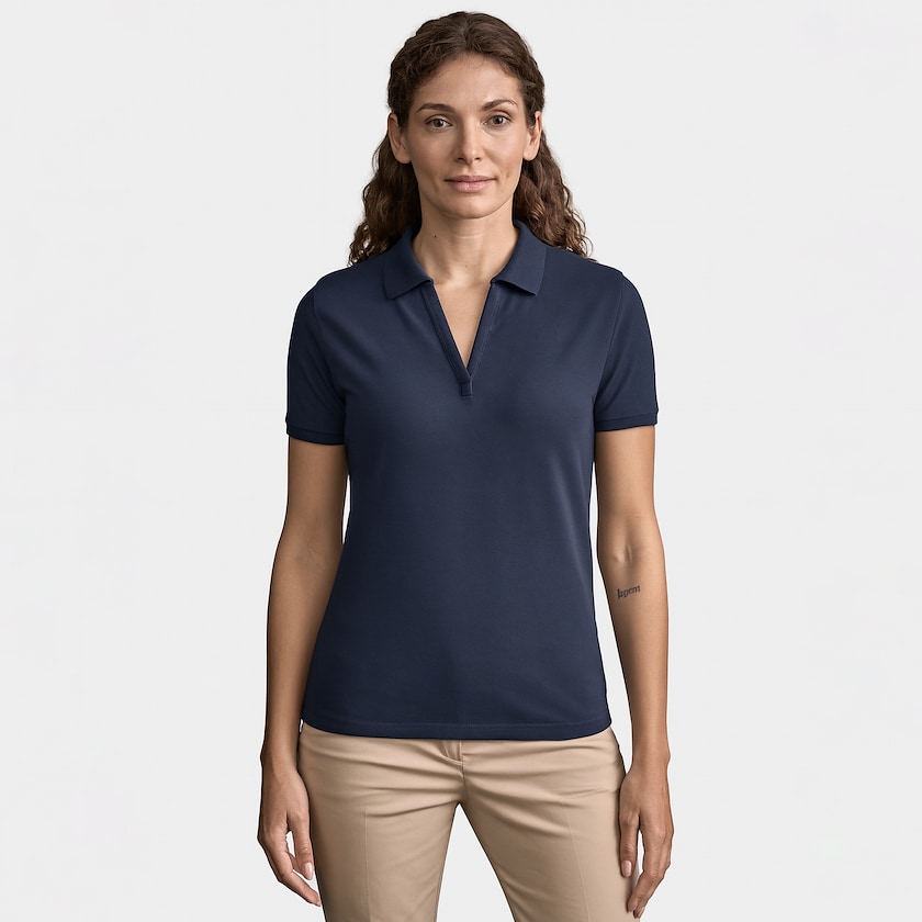 Elegant designad pikétröjor för kvinnor. Tyget är tillverkat av 95% ekologisk bomull och 5% elastan vilket ger perfekt komfort och passform.