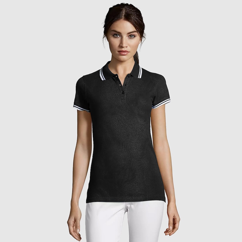 Pikétröja för damer med ränder på krage och ärmar. Pikétröjan är modernt figursydd och är tillverkad av ett 200 grams bomullstyg som är OEKO-TEX-certifierat. I pikétröjans hals finns tre knappar. En tidlös klassiker! Finns även som herrmodell.