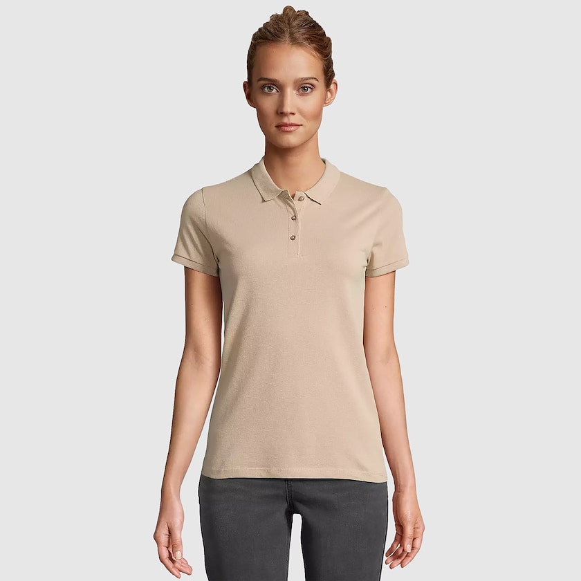 170 grams dampiké av ekologiskt odlad bomull. Tröjan har tre knappar som matchar tröjans färg. Tyget är certifierat enligt ÖKO-TEX. Finns även som herrmodell.