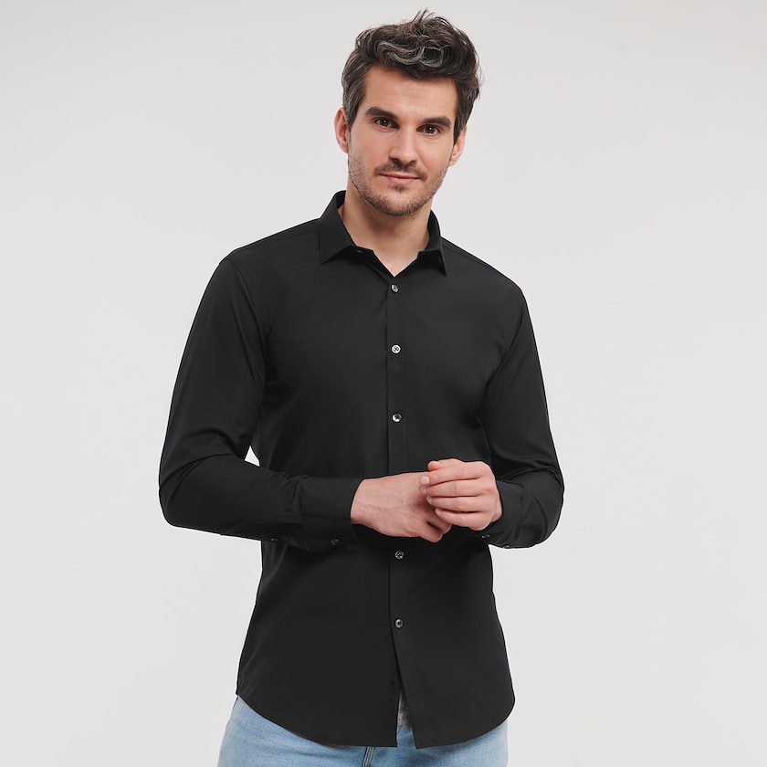 Högkvalitativ herrskjorta med unikt tyg med stretch. Skjortans tyg innehåller det revolutionerande materialet LYCRA T400 som ger en mjuk stretch åt tyget. Tyget är dessutom av typen easy care och blir ytterst sällan skrynkligt. Levereras styckförpackad i plastpåse. Finns även som dammodell.