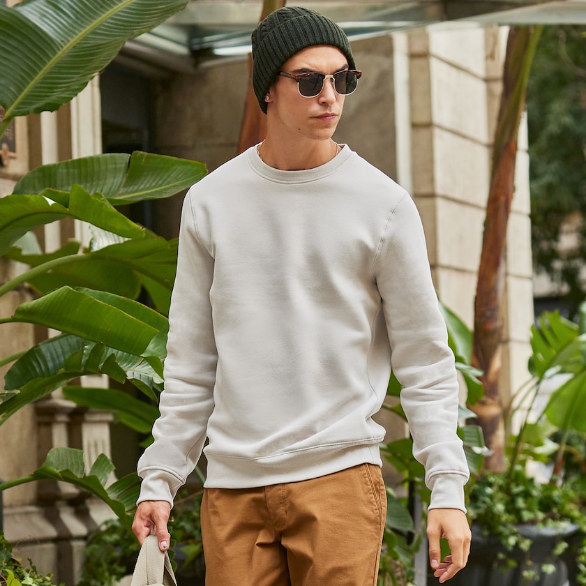 Högkvalitativ sweatshirt med exceptionellt mjukt tyg. Tröjan har en modern passform och moderiktiga detaljer. Tyget är tillverkat av 80% bomull och 20% polyester, förutom färgen heather grey som är tillverkad av 75% bomull, 21% polyester och 4% viskos samt färgen heather mid grey som är tillverkad av 60% bomull och 40% polyester. Finns även som dammodell.