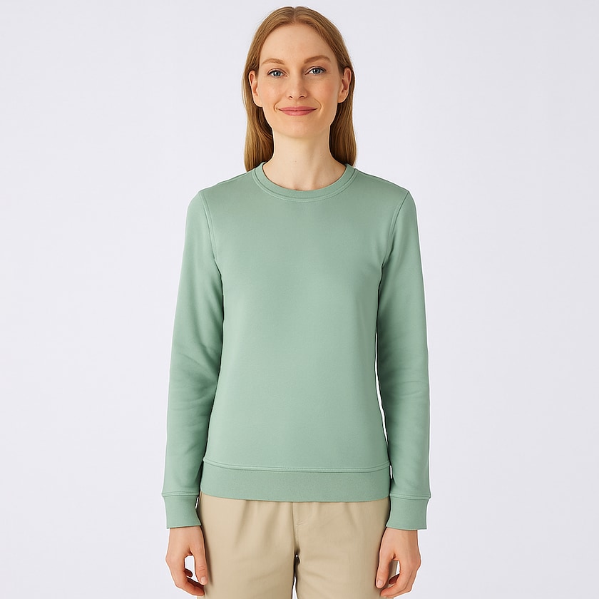 Miljövänlig sweatshirt för kvinnor. Tröjan är tillverkad av 80% ekologisk bomull och 20% återvunnen polyester. Färgen heather grey är tillverkad av 71% ekologisk bomull, 25% återvunnen polyester och 4% viskos. Tröjan är figursydd och har uppdaterade detaljer som gör att den känns modern. Finns även som herrmodell.