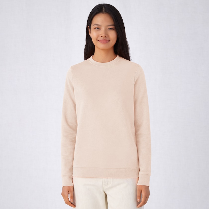 Modern sweatshirt för damer. Tröjan finns i ett mycket stort antal färger. Modellen har uppdaterade detaljer som ger den en moderiktig design. Tyget är tillverkat av 80% bomull och 20% polyester, förutom färgen heather grey som är tillverkat av 92% bomull och 8% viskos. Övriga färger av typen "heather" är tillverkade av 60% bomull och 40% polyester. Finns även som herrmodell.