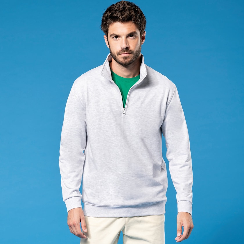 Trendig sweatshirt med kort dragkedja i halsen. Finns i flera trevliga färger. Levereras styckförpackad i plastpåse.