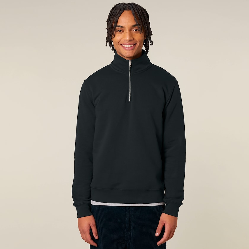 Sweatshirt i unisexmodell med kort dragkedja i halsen. Tyget är gjort av 85% ekologisk bomull och 15% återvunnen polyester.