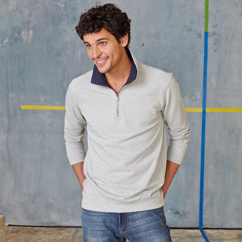Tröja med kort dragkedja och innerkrage i kontrastfärg. Kariban Trucker är en ledig tröja som lämpar sig bra för brodyr. Tröjorna levereras styckförpackade i plastpåse.