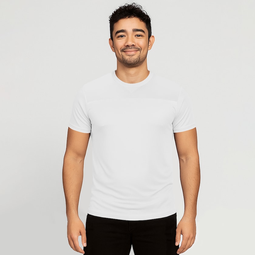 Miljövänlig tränings-t-shirt för män. Tyget är tillverkat av 90% återvunnen polyester och 10% elastan. Tyget är speciellt framtaget för träning och håller dig sval även under intensiva träningspass. Finns även som dammodell.