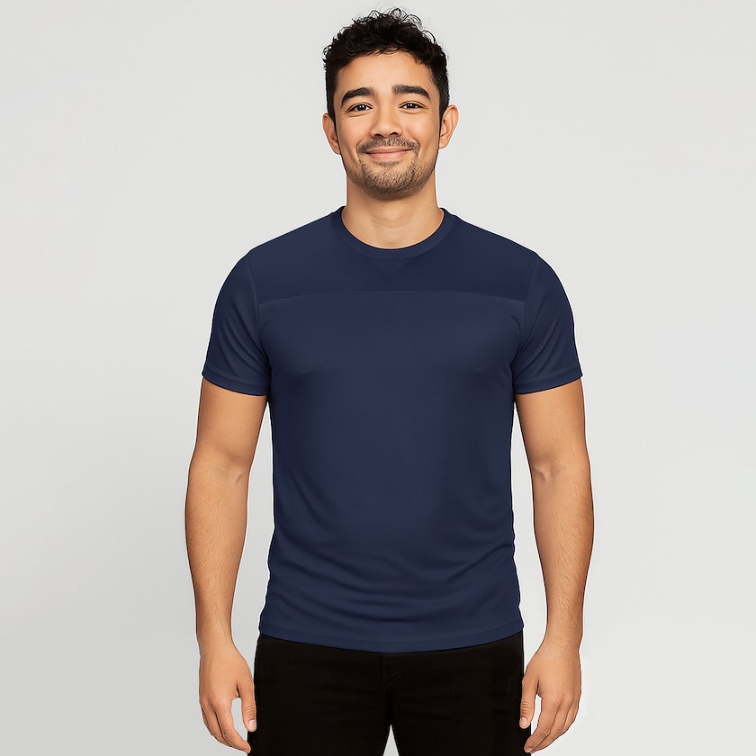 Miljövänlig tränings-t-shirt för män. Tyget är tillverkat av 90% återvunnen polyester och 10% elastan. Tyget är speciellt framtaget för träning och håller dig sval även under intensiva träningspass. Finns även som dammodell.