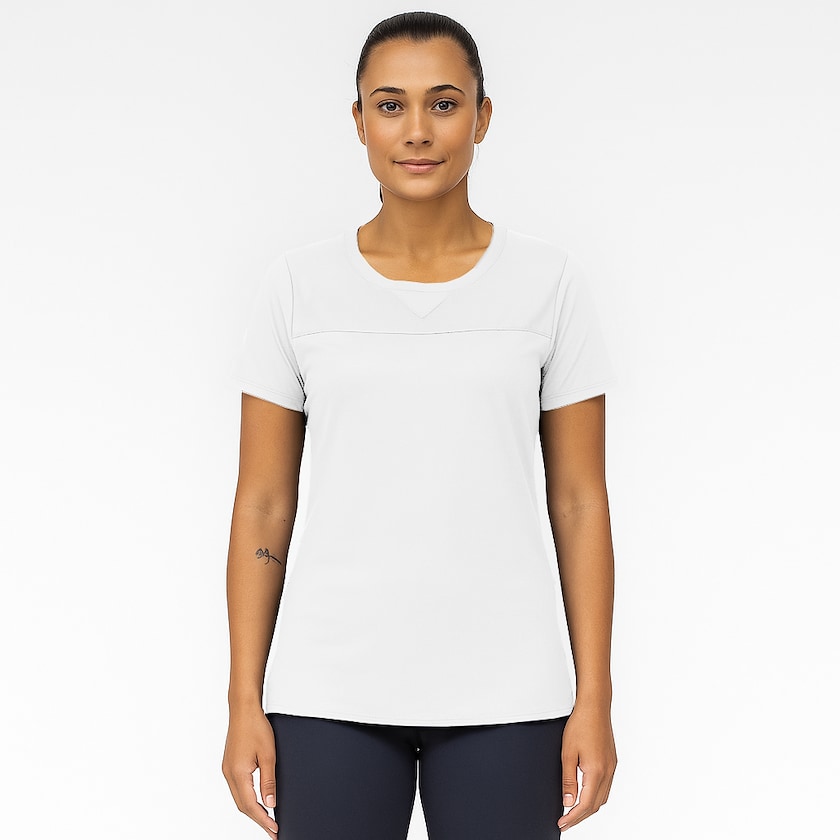 Tränings-t-shirt för damer av återvunnet material. Tyget är producerat av 90% återvunnen polyester och 10% elastan. Tyget är framtaget för träning och håller dig sval även under intensiva träningspass. Finns även som herrmodell.
