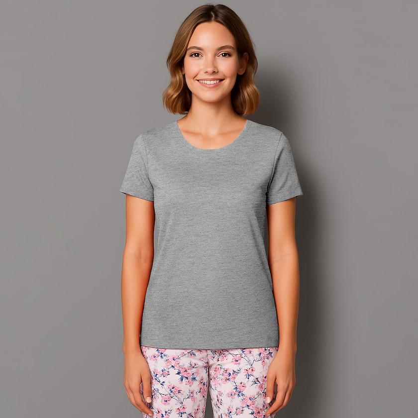 Dam-t-shirt av ett härligt mjukt bomullstyg. Tyget är producerat av 100% bomull och har en vikt på 185 gram/m². Färgen heather grey är producerad av 85% bomull och 15% viskos. Finns även som herrmodell.