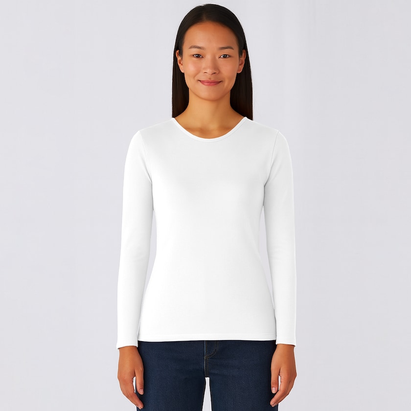 Långärmad dam-t-shirt med modern passform. T-shirten är tillverkad av ett 185 grams bomullstyg som finns i ett flertal olika färger. Finns även som herrmodell.