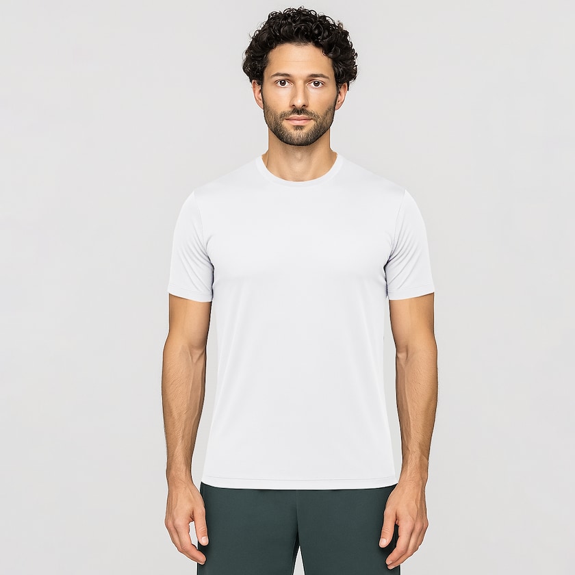 Tränings-t-shirt med svalt tyg av polyester. T-shirten har rund hals och kroppsnära passform. Tack vare det svala tyget håller du dig varm även under intensiva träningspass. Finns även som dammodell.