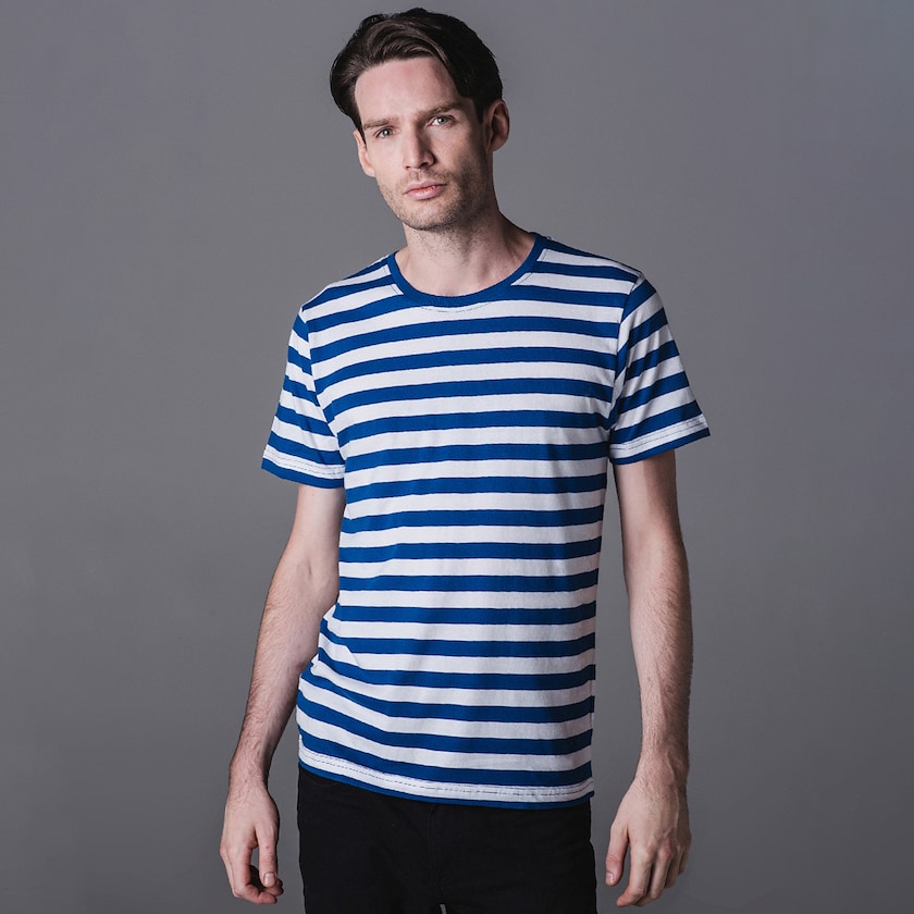 Randigt är vackert! Randig t-shirt från Mantis. Mantis Men´s Stripy T är tillverkad av 100% bomull. Levereras styckförpackade i plastpåse. Beställ randiga t-shirts med tryck hos Axon Profil! Finns även som dammodell.