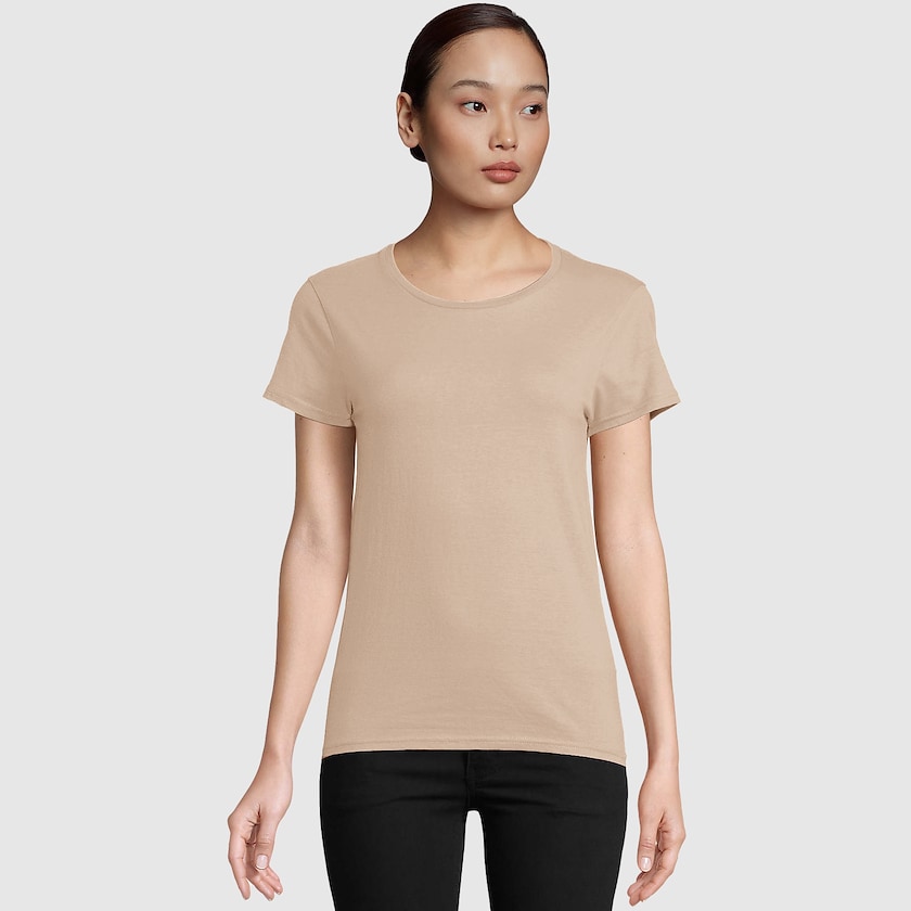 Dam-t-shirt med ekologiskt bomullstyg. Kan köpas med tryck från 10 st. T-shirten har ett 175 grams tyg av 100% ekologisk bomull. Tyget har en naturligt mjuk känsla. Finns även som herrmodell.