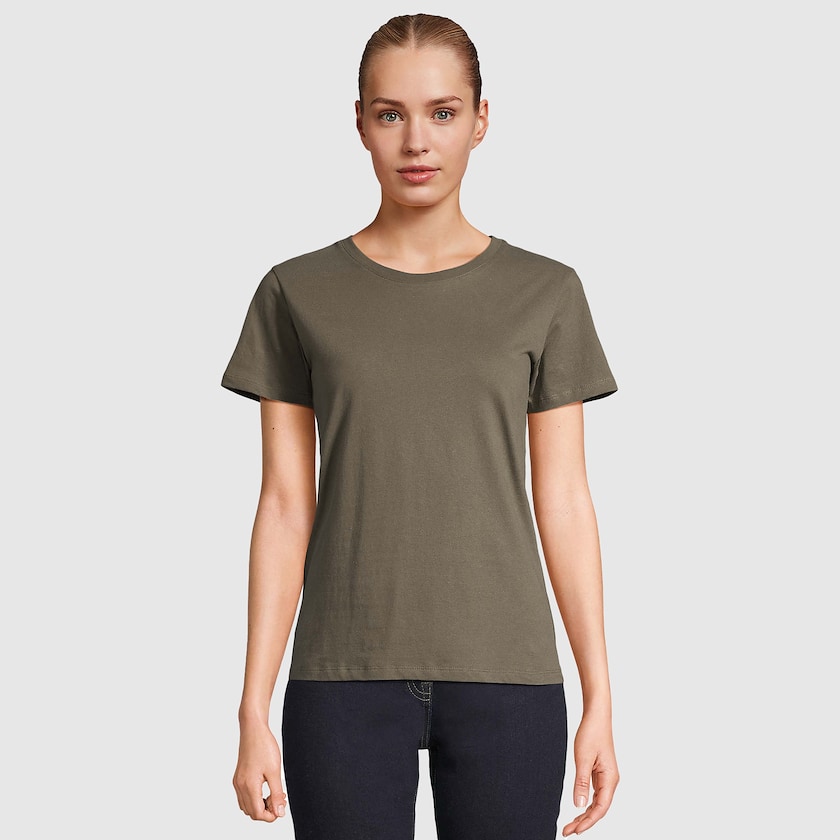 SOL´s storfavorit bland dam-t-shirts. T-shirten är tillverkad av ett 150 grams tyg av 100% bomull. Tyget är ÖKO-TEX-certiferat. Finns även som herrmodell.