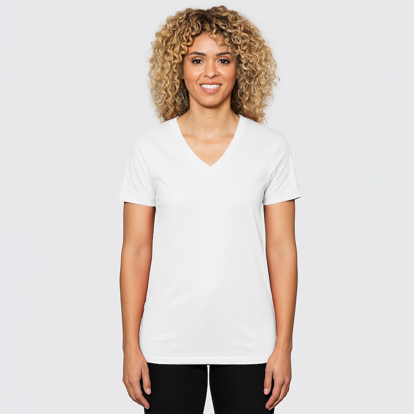 V-ringad dam-t-shirt från Elevate. T-shirten är tillverkad av 100% bomull och har ribbstickad krage och tryckt nacketikett för högsta komfort. Finns även som herrmodell.