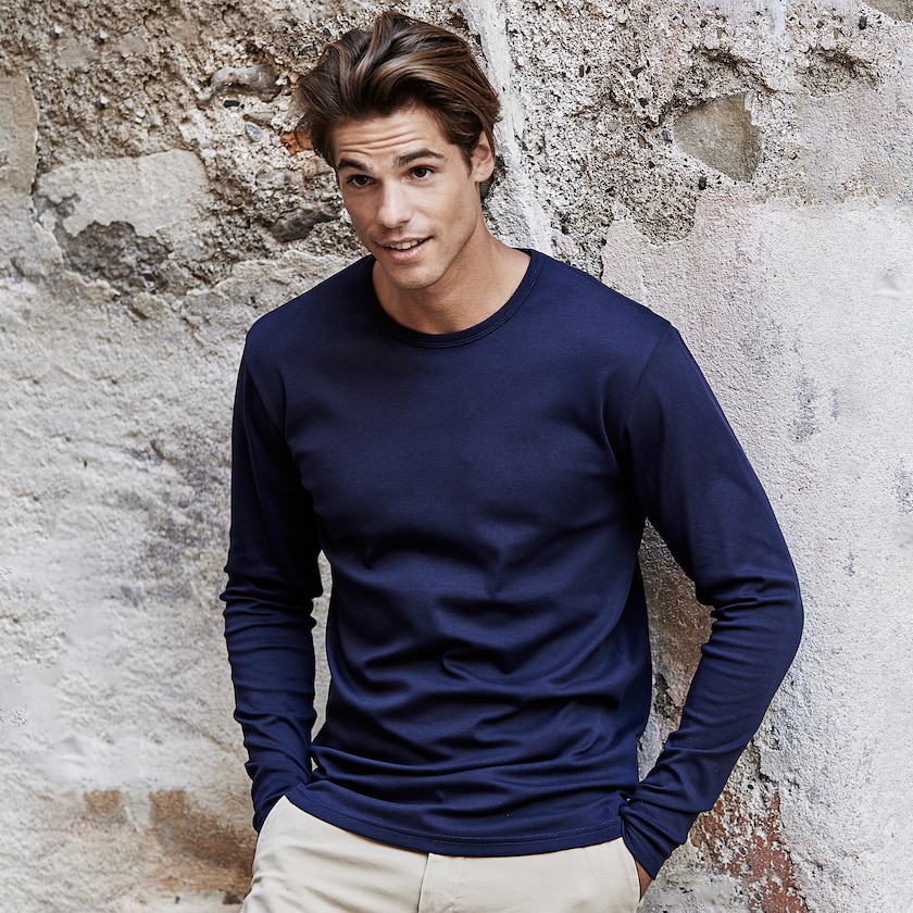 Långärmad variant på Tee Jays Interlock Tee. Högkvalitativ långärmad t-shirt som är tillverkad av långfibrig bomull i 40s garn. Tyget är enzymtvättat och silikonbehandlat, vilket ger en både mjuk och läcker finish. Levereras styckförpackad i plastpåse. Finns även som dammodell.