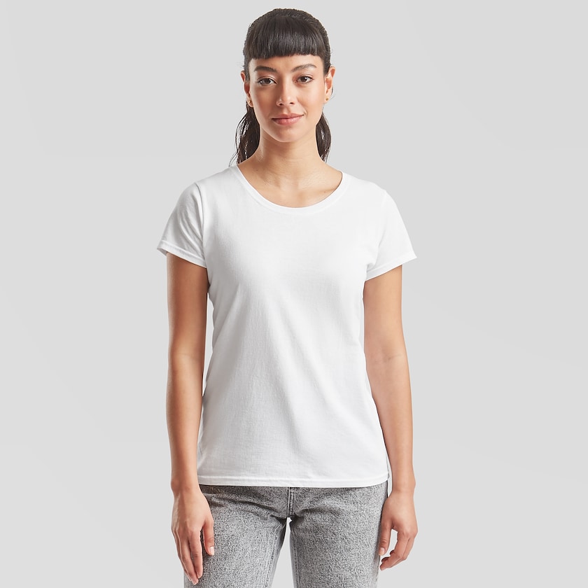 V-ringad t-shirt för damer från Fruit of the Loom. Tröjorna levereras styckförpackade i plastpåse. Finns även som herrmodell.