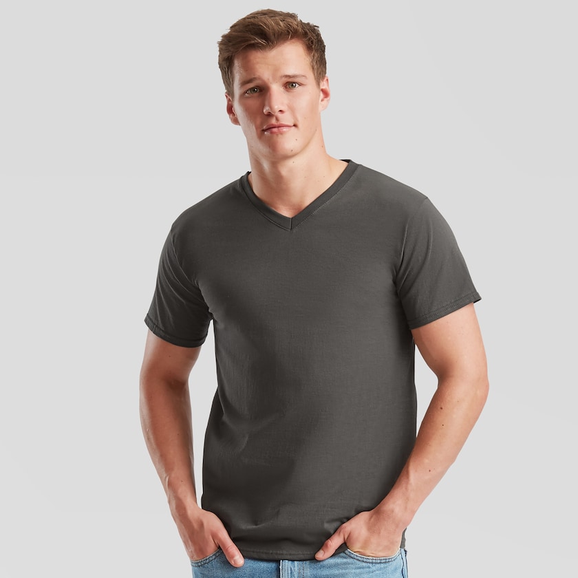 Prisvärd V-ringad t-shirt från Fruit of the Loom. Tröjorna levereras styckförpackade i plastpåse. Finns även som dammodell.