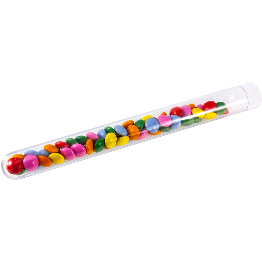 Transparent provrör fylld med 13 gram chokladlinser. Det här produkten för dig som söker reklamgodis som väcker uppmärksamhet. Beställ provrör med chokladlinser hos Axon Profil!