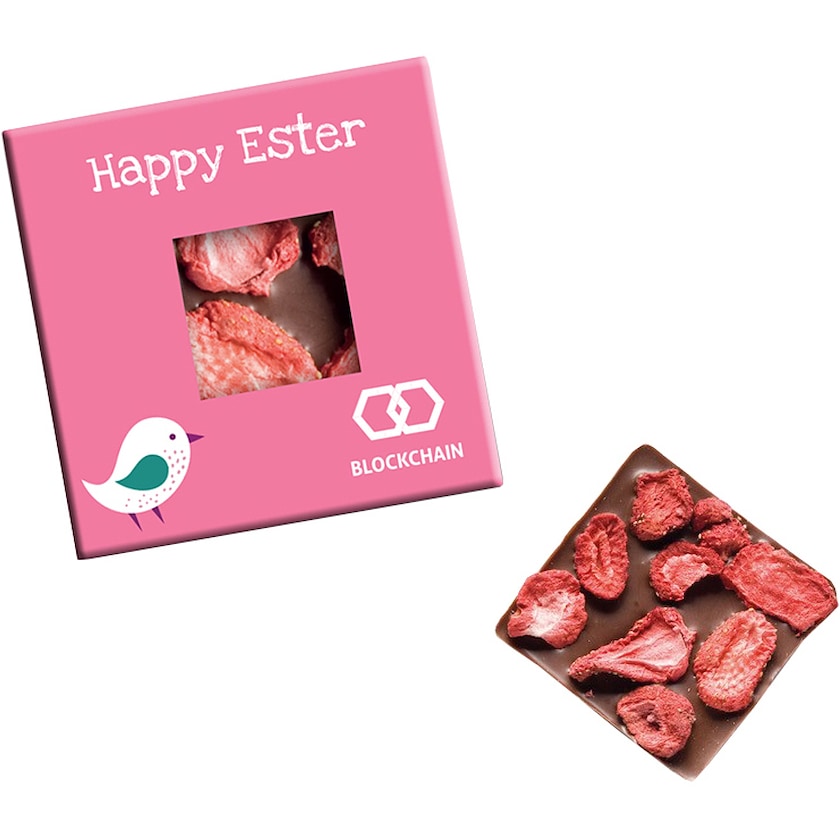 25 grams förstklassig choklad med härlig fyllning. Välj mellan flera olika smaker. Chokladen håller absolut högsta kvalitet. Förpackningen digitaltrycks i CMYK. Förpackningen kan även offsettryckas i Pantonefärger (se artikelnummer 16542).