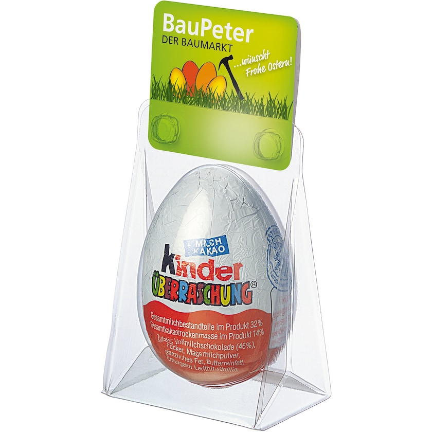 Kinderägg i transparent förpackning med digitaltryckt kort. Kinder överraskningsägg är alla barns favorit och en alltid lika uppskattad gåva. Ägget kommer i tysk version.