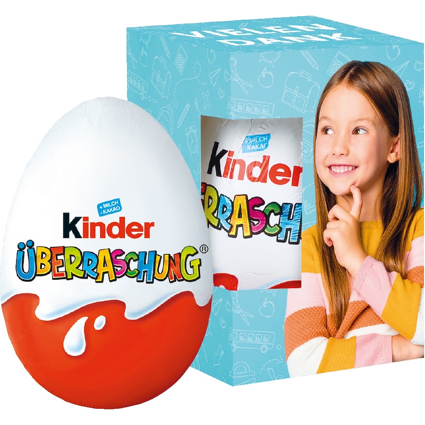 Kinderägg i pappförpackning med ditt tryck. Barnens stora favorit! Kinderägget kommer i tysk version.